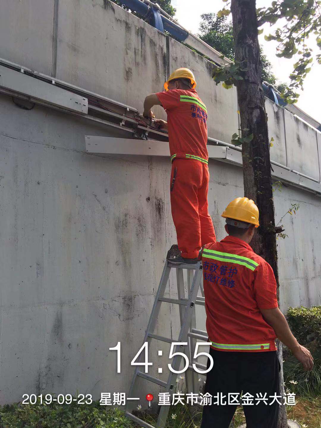 两江新区市政园林水利管护中心与两江智慧城投公司签订了景观灯饰维护合同,对礼嘉、鸳鸯、人和、大竹林、翠云、天宫殿、康美、金山街道8个街道内约128000盏景观灯、灯带约3800米、LED发光带约400米、配电箱约240个及智能控制系统进行巡查及日常维护工作。工程范围包括从电源搭接点至景观照明设施各类灯具,其中包含管网、线管、电缆、固定支架、灯具、配电箱等管护及维护工作。两江智慧城投公司根据管护中心的要求对及景观灯饰开展了高效稳定的维护工作,保障了亮灯率及设施完好率,圆满完成了各类投诉处理,重大节假日保障工作。
