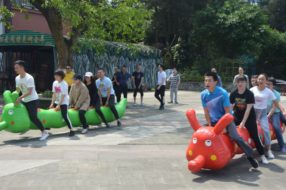 接下来是“无敌毛毛虫”,“转头一定要快!”“我们要左右脚协调哦!”……在正式开始前,两条“毛毛虫”各自商量了策略,比赛正式开始,随着教官一声令下,吸睛的两条充气毛毛虫疯狂地向着前方冲刺,“左!右!左!右……”助威声、口号声、欢笑声响彻拓展基地的上空。有的队靠着首尾的男同志带着队员奔跑,有的队东倒西歪向前移动,但很快又调整好步伐,“疯狂毛毛虫”将所有员工的热情调动起来了。紧接着,“袋鼠运瓜”热力开展,员工们全心投入拓展体验中,为团队拼搏,增强体力,激发潜能。