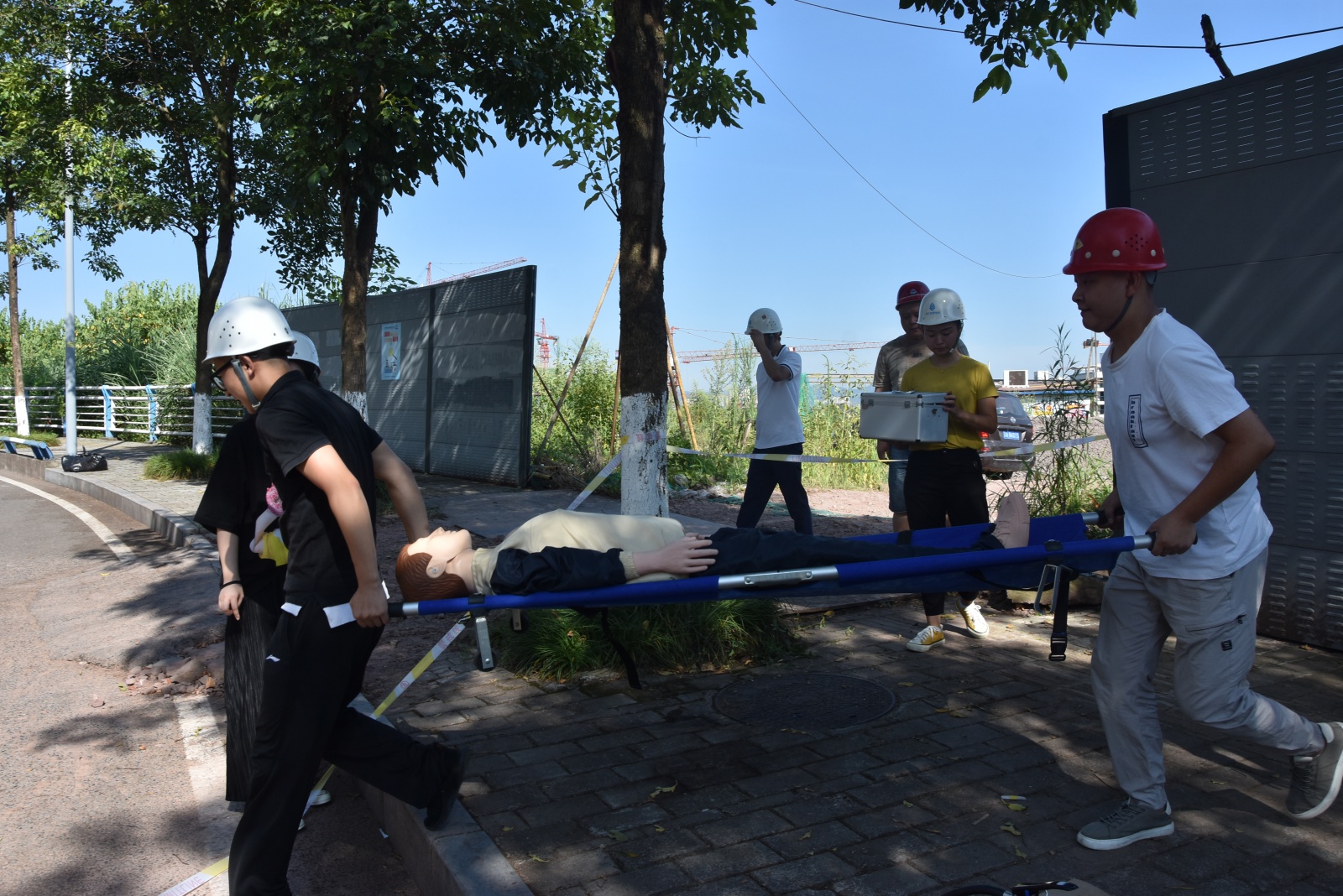 伴随着现场一阵火花冒起,一名作业工人不慎触电倒地演练正式拉开帷幕,现场工友发现后及时进行了断电、灭火、事故报告等现场处置。公司应急管理办公室收到现场事故报告后按触电专项应急预案要求进行了事故报告,并启动了项目部级应急响应,同时组织人员立即赶赴现场开展应急援救,在最短时间内完成了受伤人员的现场救护、送医救治、事故线路维修等一系列工作。经过半个小时紧急救援,触电伤员得到救治、故障线路得以修复,整个救援过程开展有序,救援小组之间配合默契,收到了很好的演练效果。