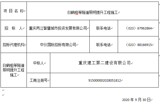 白鹤咀等隧道照明提升工程施工中标结果公示