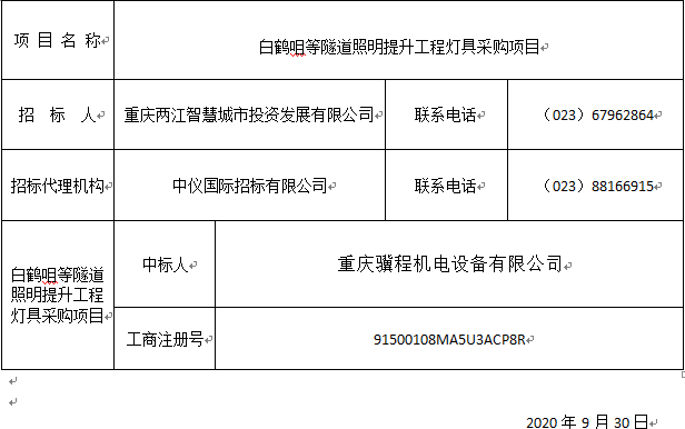 白鹤咀等隧道照明提升工程灯具采购项目中标结果公示