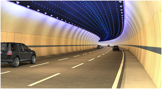 接着,大家来到了金山和岚峰隧道,作为“重庆第三届云上智博会启动仪式”沿线设施保障照明提升工程。在参观过程中,项目部杨超介绍道:“该项目坐落于两江新区金渝大道,为双洞单线型公路隧道,其中岚峰隧道长约为1000米,金山隧道约为400米,隧道顶部合计使用约1.3万个点光源,打造出一片璀璨的蓝色星河景象。”同时,他还提到,该项目由于工期短、时间紧,项目部相关人员在保证安全和工程质量的前提下,加班加点,原本需要2个月完成的工作任务,仅仅只用了十几天就完成亮灯,并且可利用手机远程控制,精准定位,调光、调色温。坐在车里看着窗外大家触动良多,隧道顶部闪现的“星空”既梦幻又赏心悦目,还可以有效缓解驾驶员行驶过程中产生的视觉疲劳,减少事故隐患。大家表示,这个项目在有限时间内呈现出这么美丽的景象,和我们一线工作人员夜以继日、废寝忘食、埋头苦干的努力密不可分,是他们争分夺秒“拼”出来的,他们在工作中敢拼敢干的精神劲儿值得大家学习!
