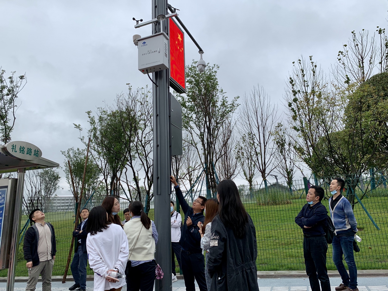 随后,大家来到了两江新区礼铭路,参观了为高标准、高品质迎接第三届智博会召开而完善提升的多功能路灯项目,项目部白波介绍道:“此次提升工程全长1.1公里,共安装了77根多功能路灯,通过对道路沿线的地上空间进行充分整合,实现了交通安全设施、应急指挥设施、城市管理设施等的‘多杆合一’改造,是重庆市内首条实现‘多杆合一’的道路。此外,道路沿线加装了树木倾斜监测等智慧城管系统的前端感知设备,丰富了智慧公园周边道路的智慧场景应用。”面对道路两旁的“多杆合一”路灯大家深有所感,礼铭路项目“多杆合一”的成功经验为我们今后开展更多信息化建设奠定了坚实基础,也加强了大家做好信息化项目建设的信心和决心!