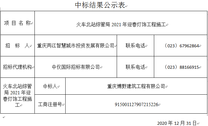 火车北站综管局2021年迎春灯饰工程施工中标结果公示