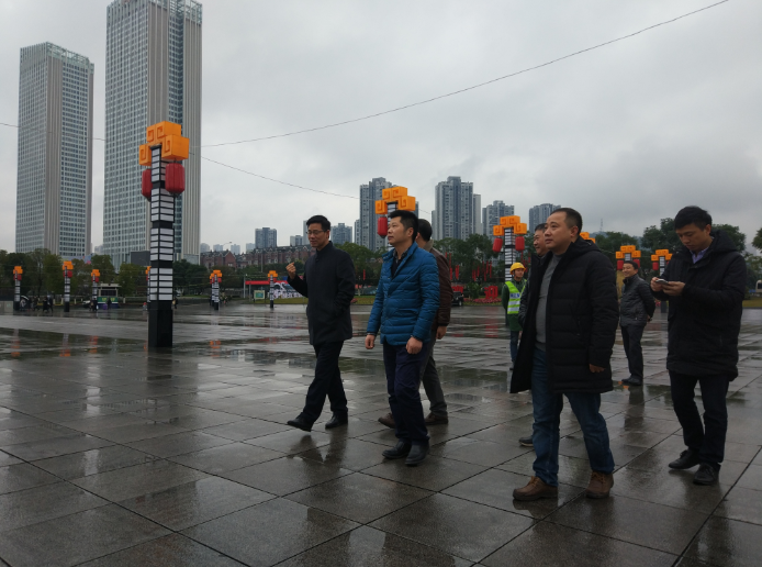 2019年元旦节即将来临,为增强安全文明施工意识,强化安全生产责任制,把安全文明施工落到实处,确保年前安全生产及避免元旦节期间安全事故发生,12月29日上午,两江金融公司副总经理、两江智慧城投公司总经理李伟率队深入火车北站、星光大道2019年迎春灯饰工程施工现场进行安全大检查,公司副总经理朱必泽、安全生产办公室主任李光荣陪同检查。 上午十时,检查组抵达重庆北站北广场展开检查。迎春灯饰施工存在人流、车流量大等特点。施工期间未封闭社会车辆、行人通行,车辆交通事故和临边临口作业、高空作业、施工用电